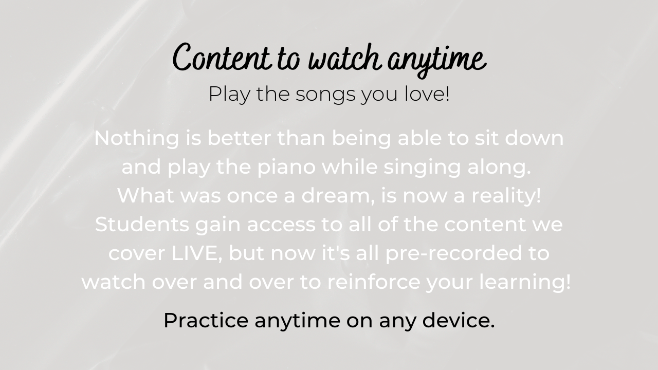 Our members give us rave reviews because our method is simple. Our tutorials are different than anything you've ever experienced. Most of our students have been frustrated learning piano in the past, but once they found our Simplified Piano Method, they have been hooked ever since.